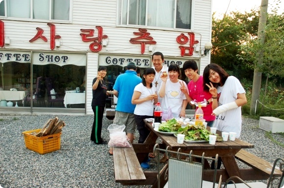 예수원에서 지체들이 떠날때 모여서 환송을 해 준다.